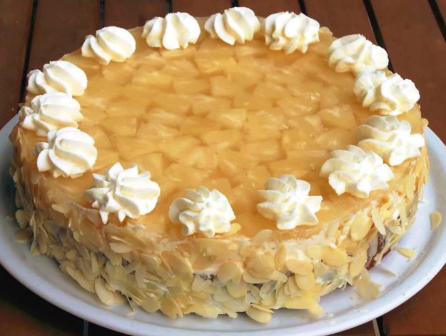 Tipp: Die gehobelten Mandeln in einer Pfanne leicht anrösten: Sieht gut aus und so schmeckt die Ananastorte noch besser!