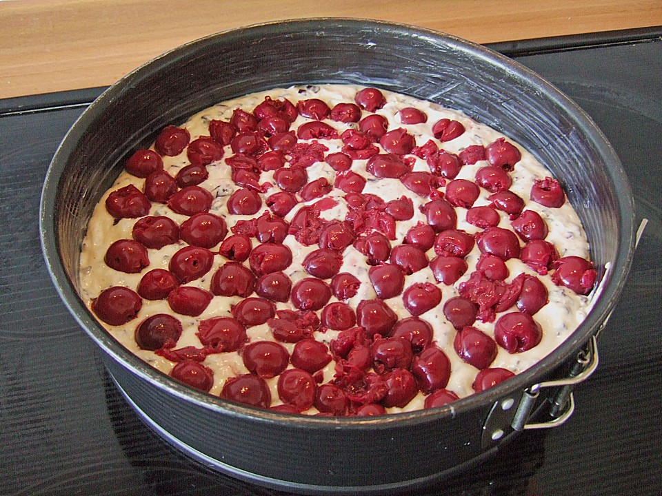 Den Zucker mit den Dottern schaumig rühren, Öl und Wasser beigeben, Das Mehl mit Backpulver versieben und mit dem Eischnee unterheben. Den Teig auf ein gefettetes und bemehltes Backblech streichen und bei 180° Ober-/Unterhitze ca. 15 Minuten backen.