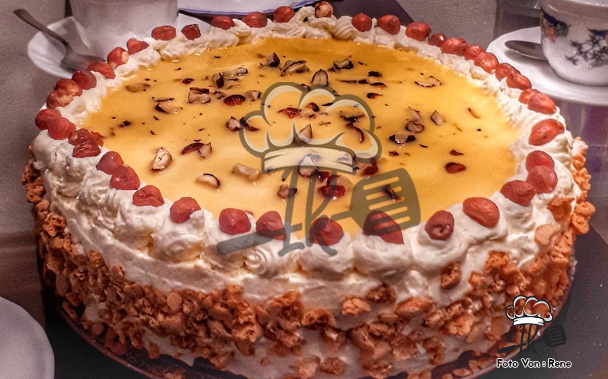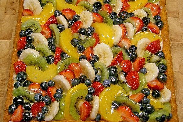 1.Eier und Zucker schaumig schlagen und Vanillezucker und Mehl hinzufügen. Den Teig auf ein Backblech geben und bei 180 °C ca. 20-25 Minuten backen.