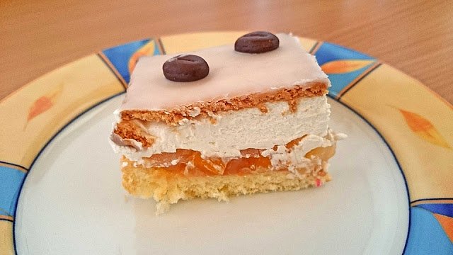 Die Eiweiße steif schlagen, dabei Vanillezucker, Zucker und Salz einrieseln lassen. Die Eigelbe unterziehen. Mehl, 1 Beutel Puddingpulver und Backpulver mischen und unter den Teig heben. Die Masse auf das Blech streichen und im Ofen ca. 12 – 15 Minuten backen.