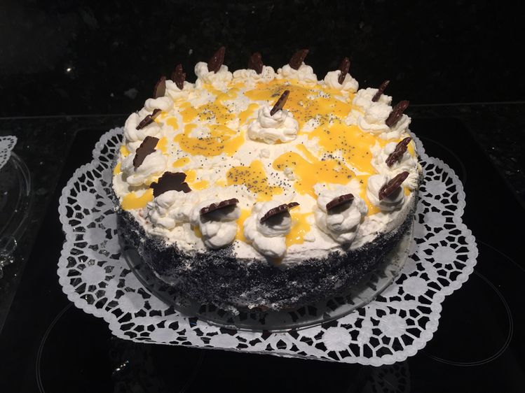 Kalt stellen, dann mit Schokoladenglasur überziehen und wieder kalt stellen.