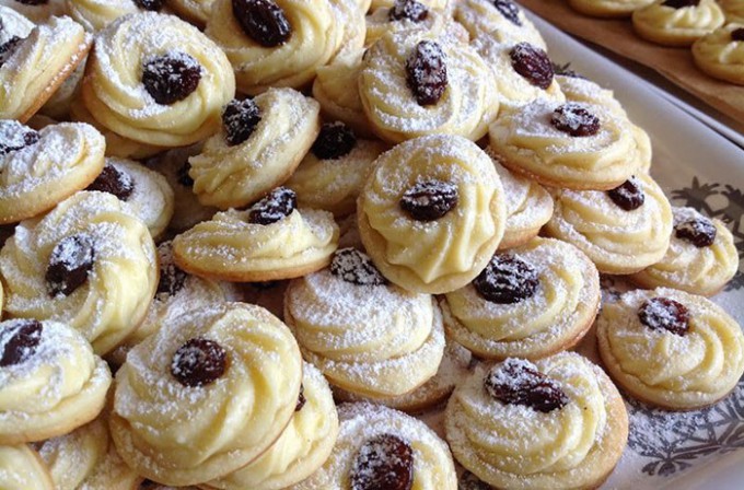 Mürbeteigboden: Für den dünnen Mürbeteigboden 125 g Mehl, 1/2 Teel. Backpulver, 2 Esslöffel Zucker und eine Prise Salz auf der Arbeitsfläche vermischen. Ein Ei in einer Tasse aufschlagen, mit einer Gabel verrühren, und die Hälfte des Eis zusammen mit 75 g Butter zum Mehl geben (die andere Ei-Hälfte wird für den Biskuitboden verwendet). Mit den Händen geschwind einen Mürbeteig kneten. Den Mürbeteig mit wenig Mehl etwas größer ausrollen wie die Springform. Mit dem Springform-Ring einen runden Tortenboden ausstechen. Ein Backpapier unter den Mürbeteigboden ziehen, den Mürbeteigboden auf einBackblech