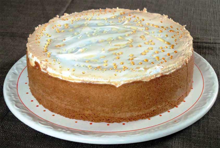 Für das Baiser das Eiweiß mit dem Puderzucker 3 Minuten schaumig schlagen. Den Käsekuchen aus dem Backofen holen und das Baiser auf dem Käsekuchen verteilen. Dann den Käsekuchen in ca. 15 Minuten fertig backen. Den Käsekuchen erst nach dem völligen Erkalten aus der Form nehmen.