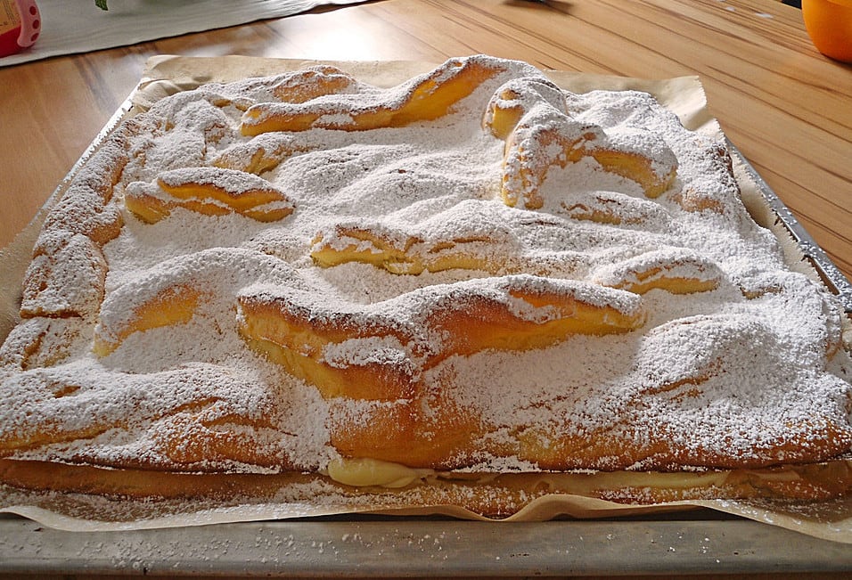 Danach die zur Seite gestellte Quarkmasse unterheben und die Creme auf den gebackenen Kuchen geben. Weitere 15 Minuten backen.