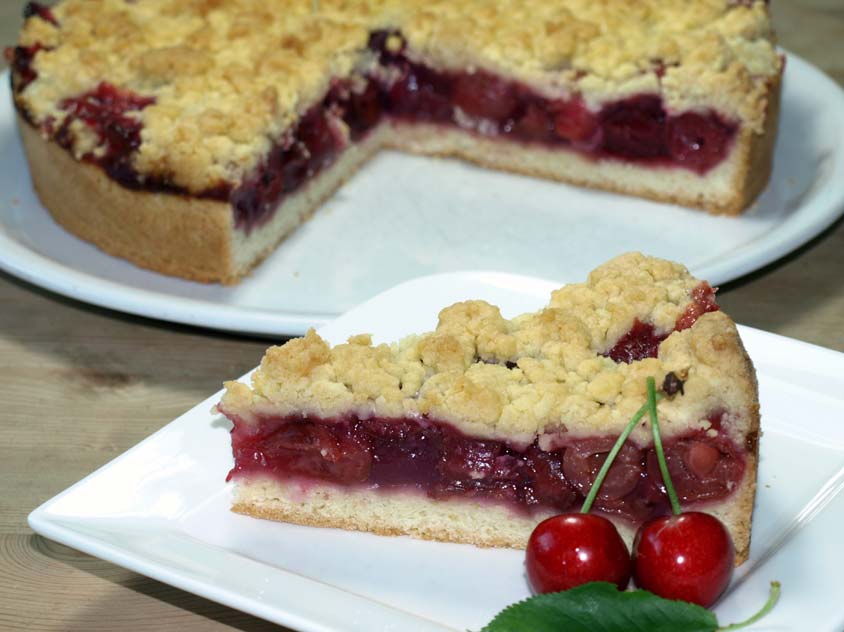 Dies ist ein Rezept für einen leckeren Kirschkuchen mit Streusel. Für den Kirschkuchen mit Streusel können Sie frische Kirschen, oder eingemachte Kirschen aus dem Glas verwenden (Schattenmorellen). In die Streusel geben wir ein Eigelb, so bekommen die Streusel eine besonders schöne Farbe. Sie können in die Kirschkuchen-Füllung einen Schuss Kirschwasser geben, dann ist der Kirschkuchen mit Streusel nur für Erwachsene.