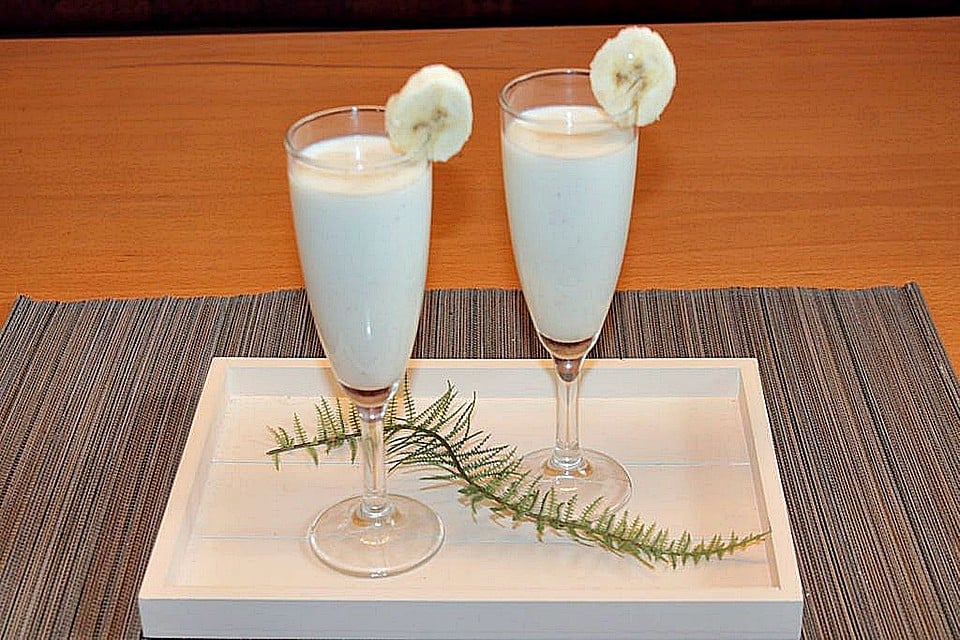 Banane pürieren und mit den restlichen Zutaten mischen. Für eine alkoholfreie Variante eventuell auch einen Teil der Milch durch Kokosmilch ersetzen, wenn man intensiveren Kokosgeschmack mag.