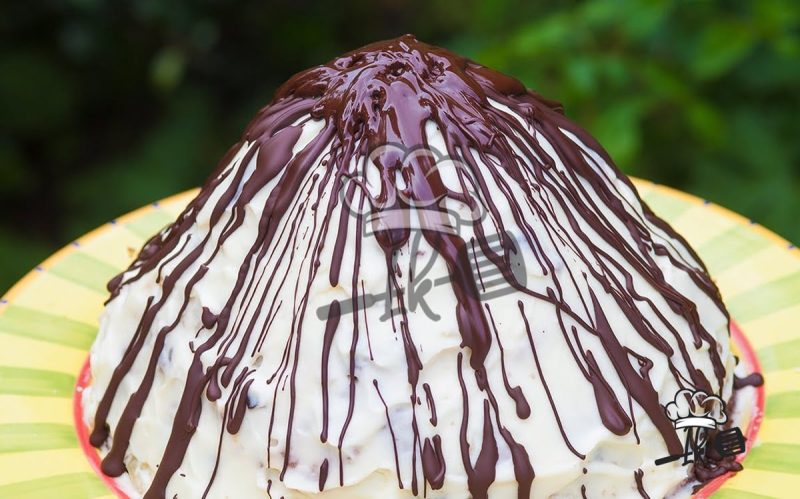 - Diese Schichten wiederholen und sie dabei in Form eines Vulkans aufhäufen.