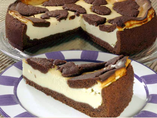 Für den Schokoladen-Mürbeteig Mehl, Backpulver und Kakao in einer Schüssel mischen und auf die Arbeitsfläche sieben. Dann 150 g Zucker und Salz untermischen, das Ei und 150 g kalte Butter, in Stücke geschnitten, dazu geben, und von Hand geschwind zu einem Mürbeteig verkneten. Nur so lange wie nötig kneten, damit der Mürbeteig nicht brandig wird (brüchig und hart nach dem backen). Dann den Teig mit einer Folie abdecken und für etwa eine halbe Stunde in den Kühlschrank stellen.
