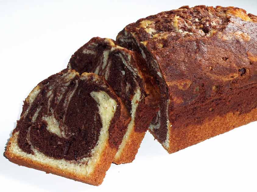 Backen Sie den Marmorkuchen im vorgeheizten Ofen bei 160 Grad Umluft oder 180 Grad Unter/Oberhitze ca. 60 Minuten. Damit der Marmorkuchen schön saftig wird, darf der Marmorkuchen nicht zu lange gebacken werden. Dazu stecken Sie gegen Ende der Backzeit im Abstand von einigen Minuten ein Holzstäbchen in den Marmorkuchen: Wenn kein Teig mehr kleben bleibt, ist der Marmorkuchen fertig gebacken und noch schön saftig.