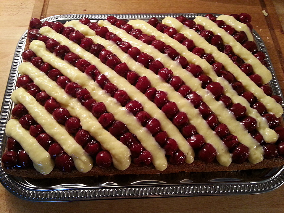 Butter (oder Margarine), 175g Zucker und Vanillinzucker cremig rühren. Dann Eier einzeln zufügen. Mehl und Backpulver mischen und im Wechsel mit 100ml unterrühren.