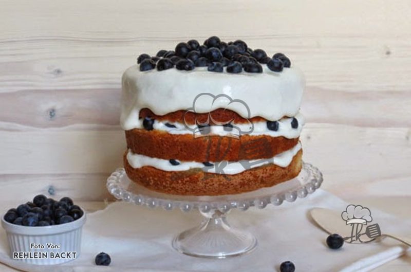 Wascht die Blaubeeren und trocknet sie sorgfältig ab bzw. lasst sie auf einem Küchenkrepp trocknen. Den Biskuit schneidet ihr zweimal horizontal mit einem großen Messer oder einem Draht durch.