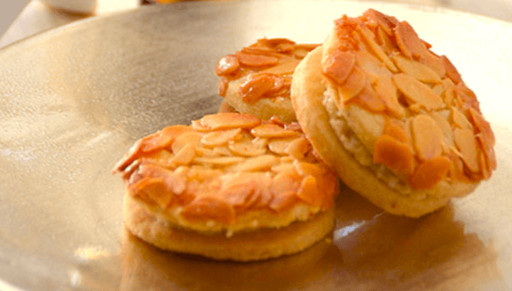 4. Für die Füllung Mandeln, Puderzucker und VERPOORTEN ORIGINAL in eine Schüssel geben und verrühren. Die Unterseiten der Plätzchen großzügig hiermit bestreichen. Mit den Bienenstichplätzchen bedecken und losschlemmen.