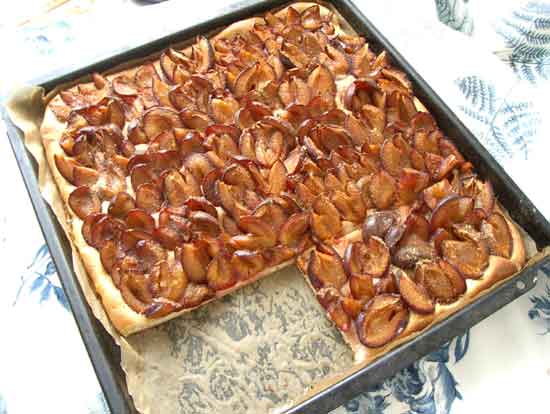 Bei Verwendung von frühen saftigen Zwetschgensorten, ist es besser, wenn man den Zwetschgenkuchen erst nach dem Backen mit der Zuckermischung bestreut, da die Früchte sonst gerne Wasser ziehen. Am Besten sind die späten Zwetschgen zum Backen geeignet, wobei man dabei eventuell auch nicht die ganze Zuckermenge benötigt, da späte Zwetschgen im Geschmack etwas süßer sind.